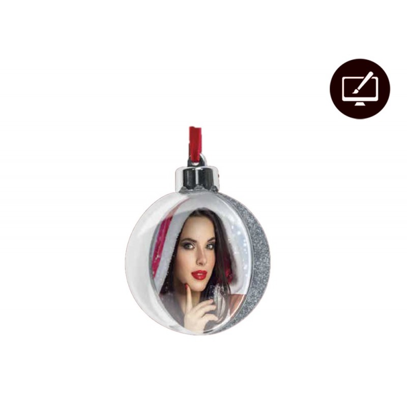 Η μπροστινή πλευρά είναι διάφανη για καθαρή προβολή της εικόνας, ενώ η πίσω πλευρά λάμπει με ασημί glitter, προσθέτοντας κομψότητα και γιορτινή ατμόσφαιρα. Μέσα από την online εφαρμογή μας μπορείς εύκολα να ανεβάσεις τη φωτογραφία σου, να την προσαρμόσεις και να προσθέσεις ευχές ή ονόματα. Ιδανική επιλογή για δώρο σε αγαπημένα πρόσωπα, για αναμνηστικά ή για να στολίσεις το δέντρο σου με κάτι πραγματικά μοναδικό.