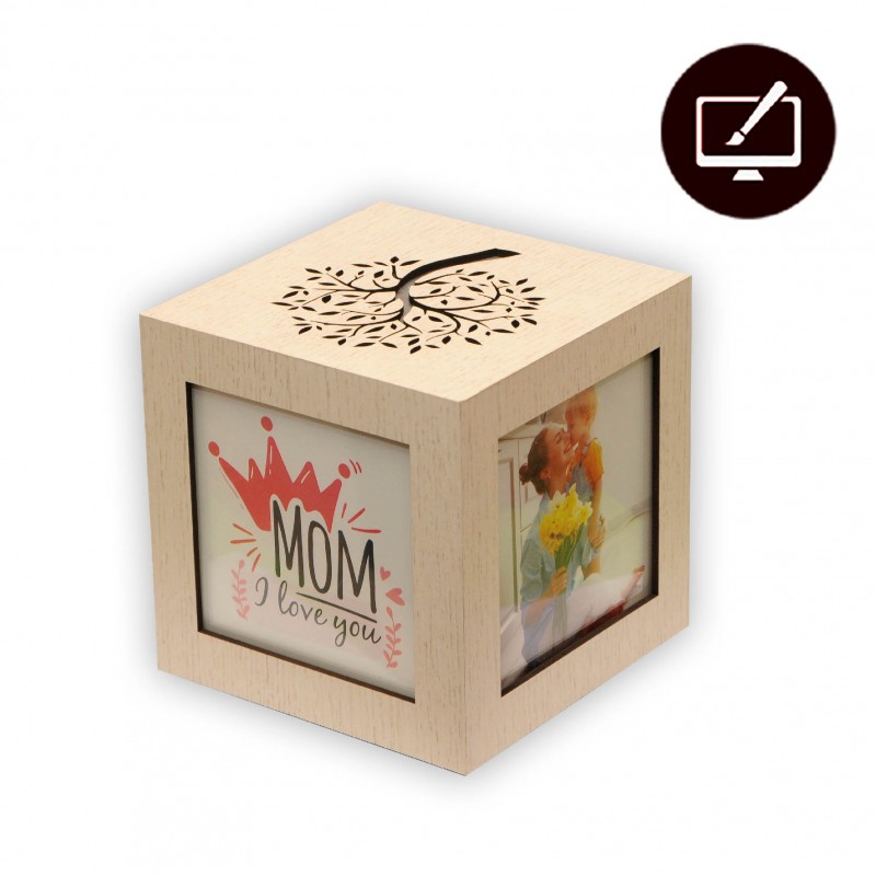Ο ξύλινος περιστρεφόμενος κύβος είναι ένα μοναδικό δώρο που συνδυάζει αισθητική και συναίσθημα. Με τέσσερις επιφάνειες εκτύπωσης φωτογραφιών και μηνυμάτων, δίνει τη δυνατότητα να δημιουργήσετε κάτι προσωπικό και αξέχαστο.
