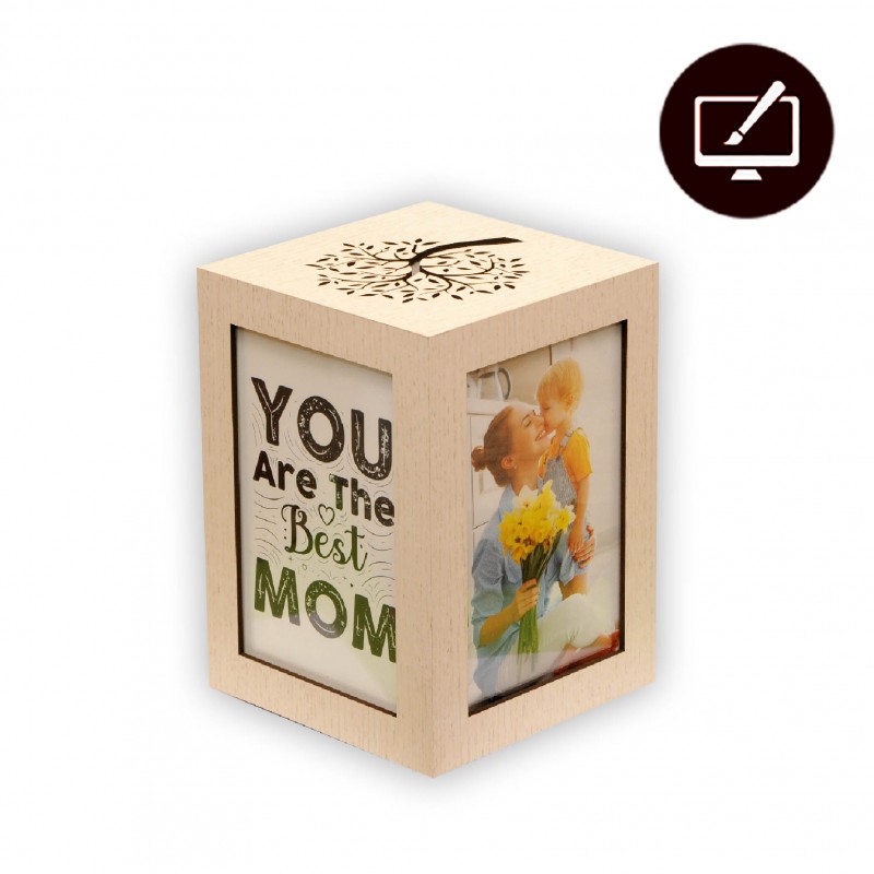 Ο ξύλινος περιστρεφόμενος κύβος είναι ένα μοναδικό δώρο που συνδυάζει αισθητική και συναίσθημα. Με τέσσερις επιφάνειες εκτύπωσης φωτογραφιών και μηνυμάτων, δίνει τη δυνατότητα να δημιουργήσετε κάτι προσωπικό και αξέχαστο.